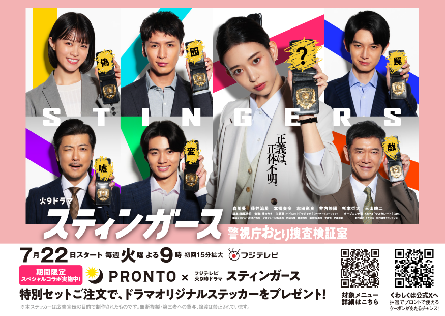 7月22日からフジテレビで放送スタートするドラマ「スティンガース 警視庁おとり捜査検証室」オリジナル特典付きメニュー販売決定!