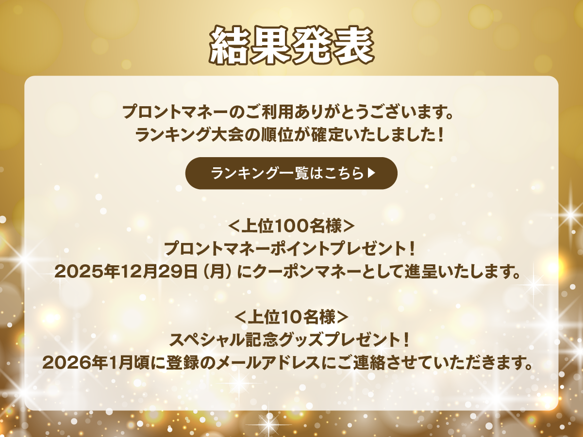 【キャンペーン】12月1日(月)〜12月25日(木)プロントマネーランキング大会開催!