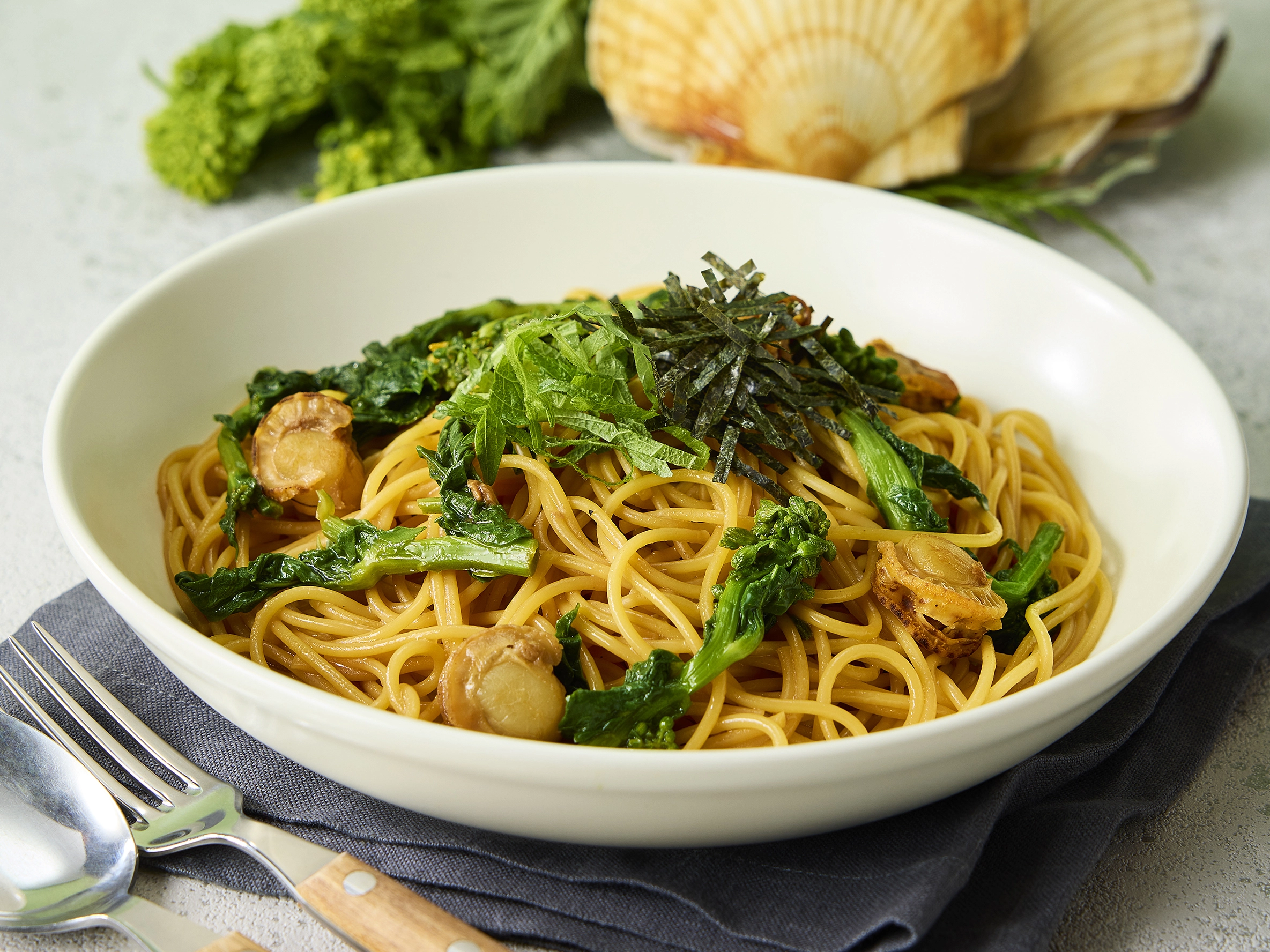 【カフェタイム】2月17日(火)〜旬を召し上がれ!季節限定パスタ「ホタテと菜の花の焦がし醤油バター」が登場!あの人気の定番パスタもリニューアル?!